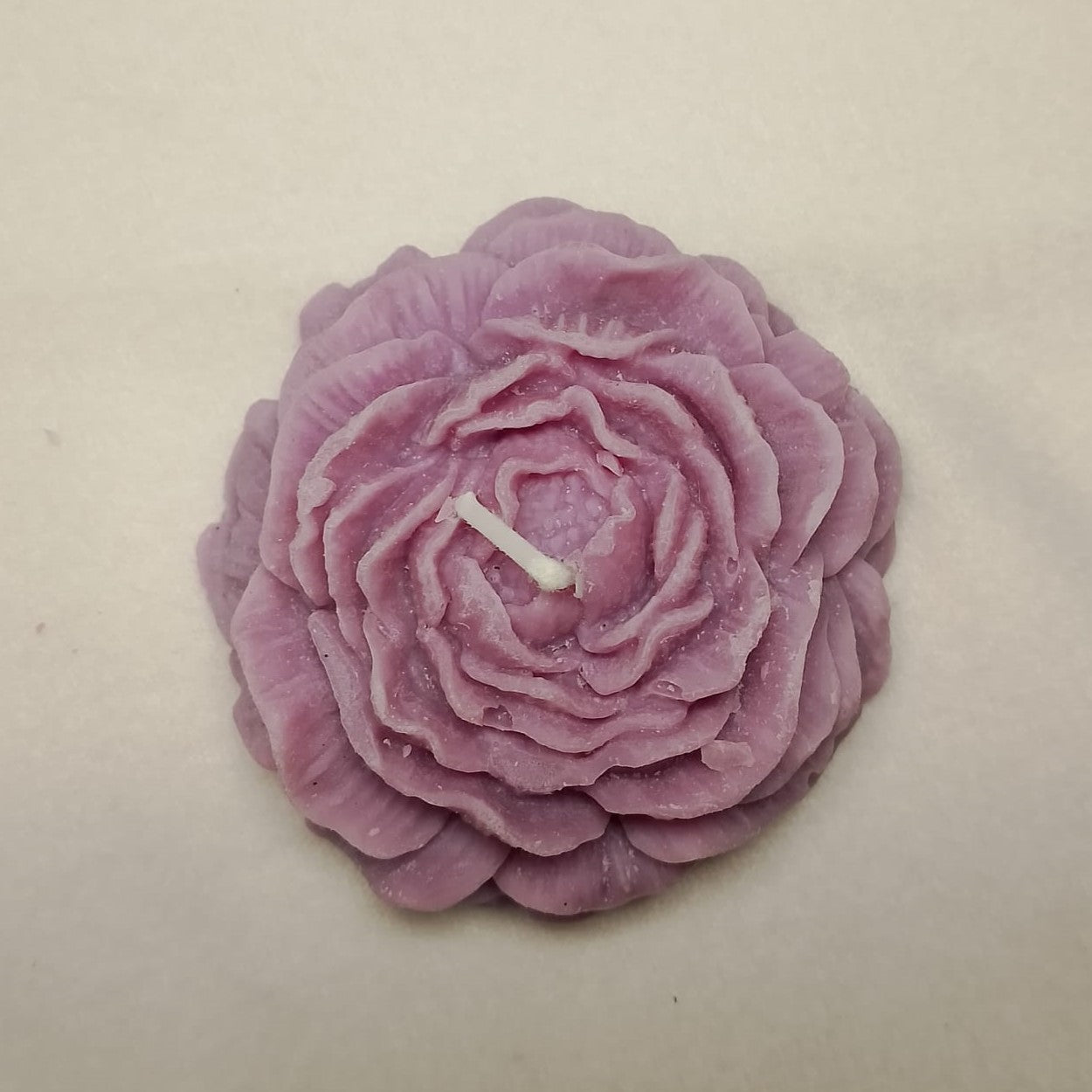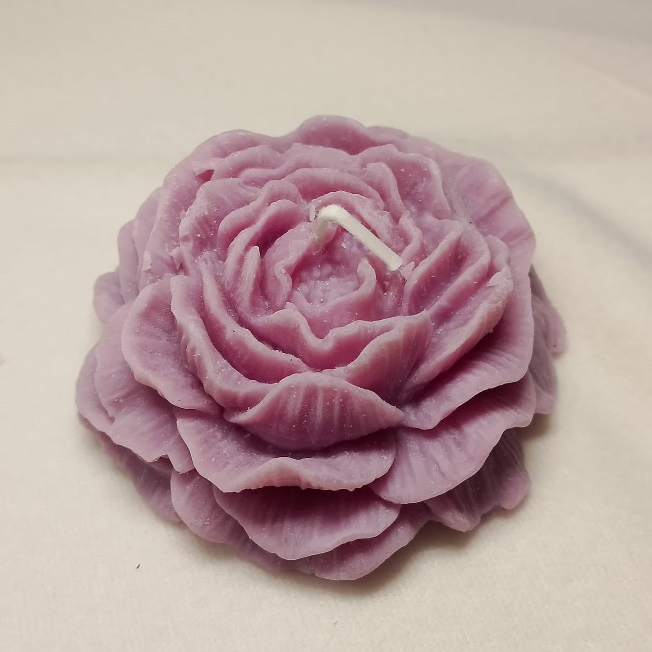 Eleganza e delicatezza in una candela in cera di oliva, colata a forma di peonia. Un tocco di raffinatezza per illuminare e decorare con stile ogni ambiente.