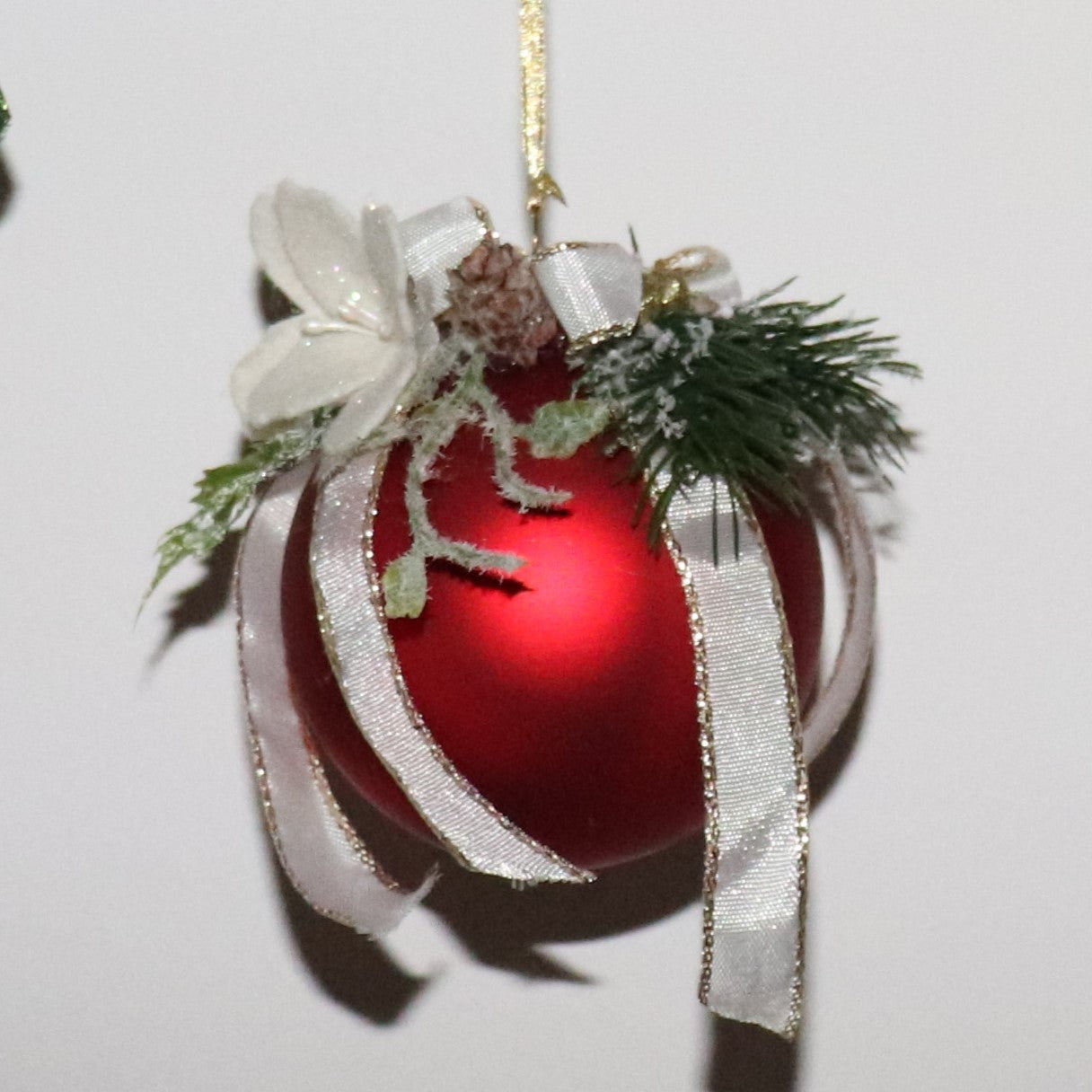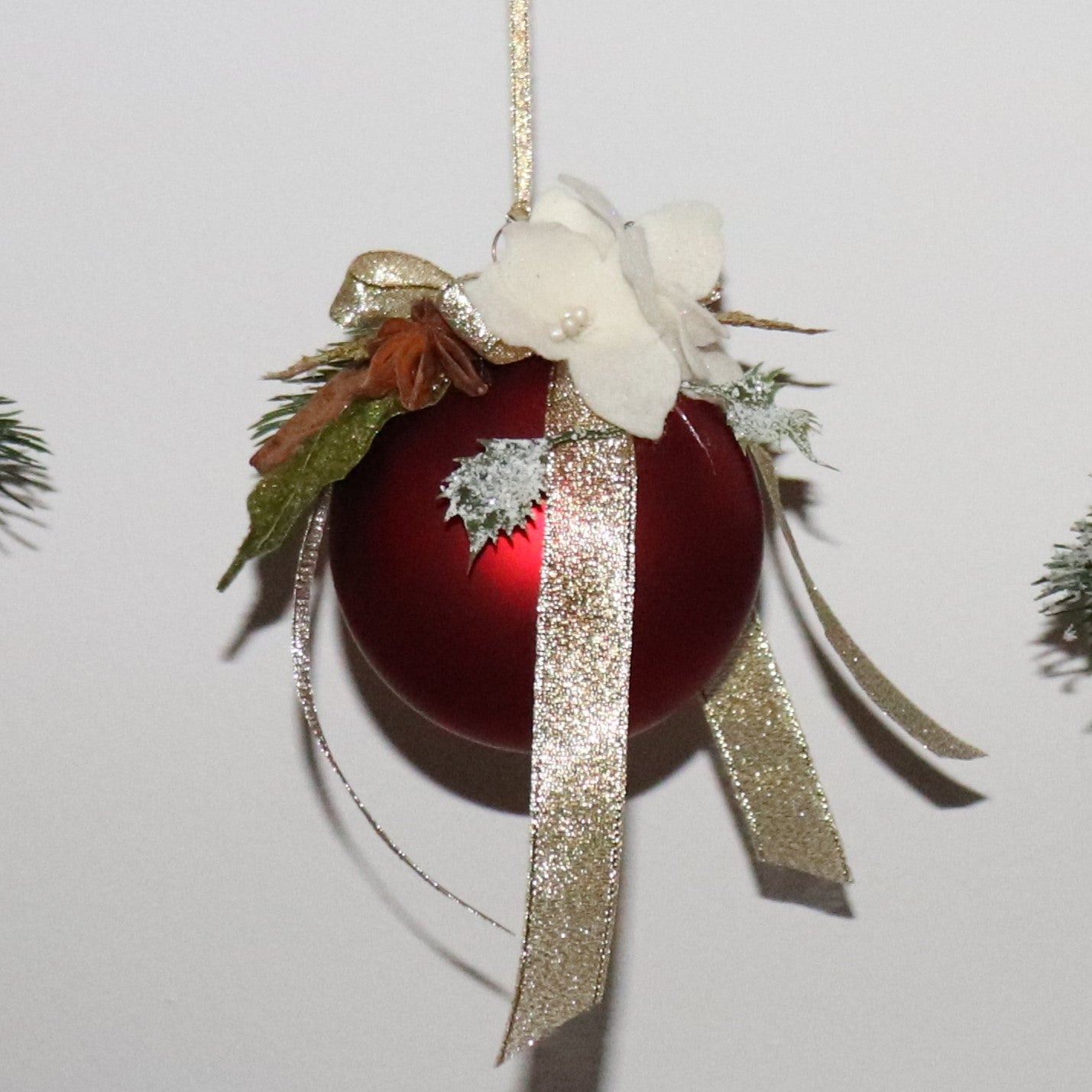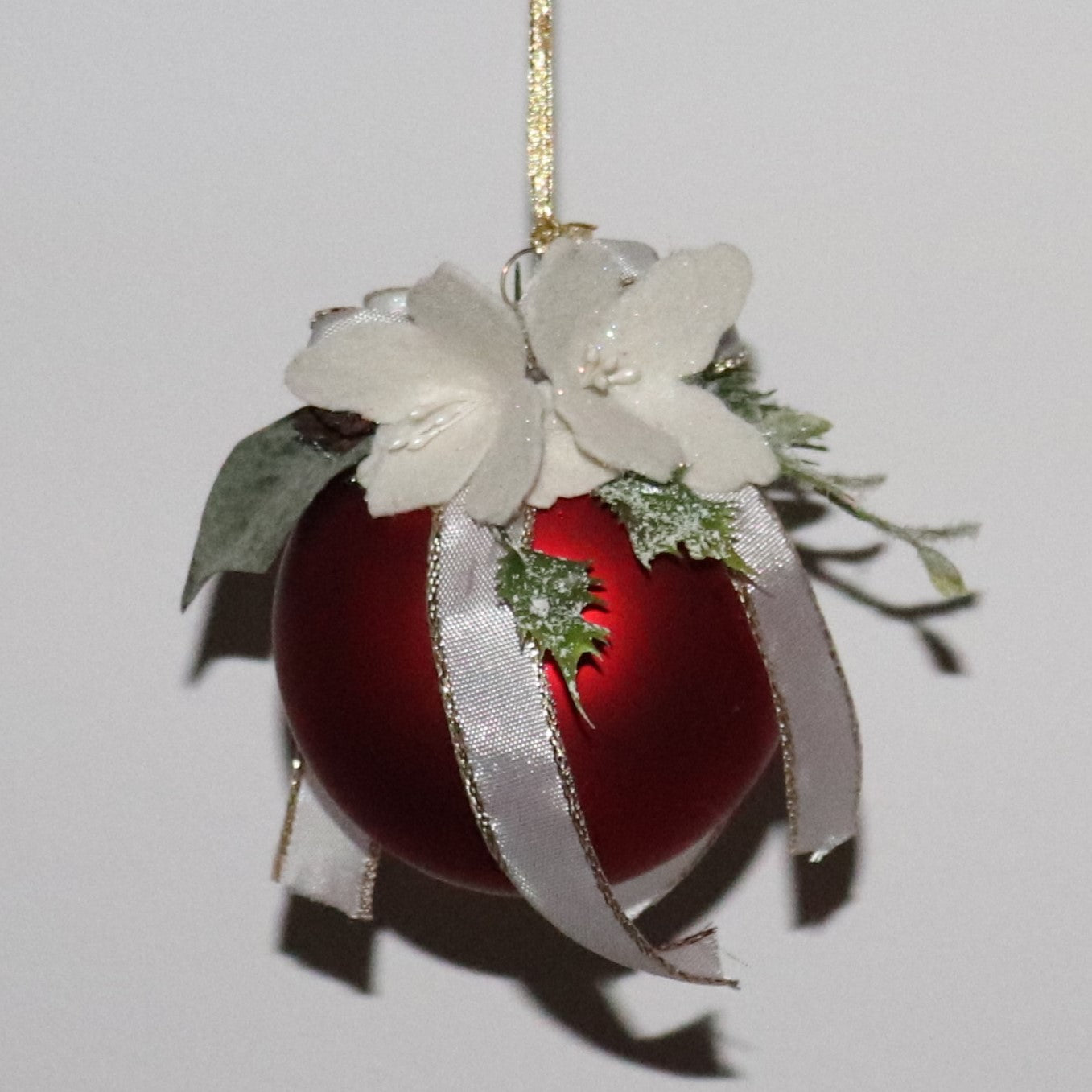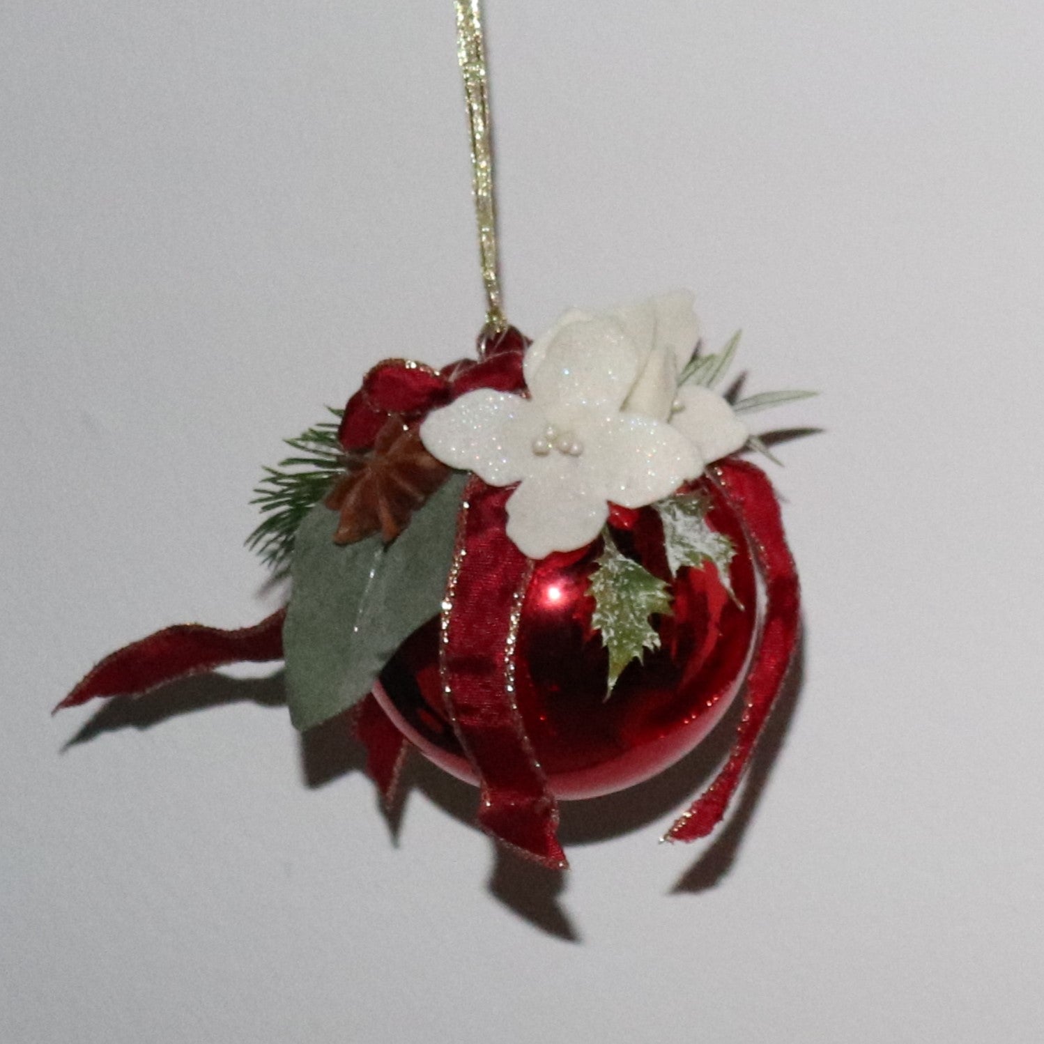 Pallina in vetro con decorazioni botaniche.