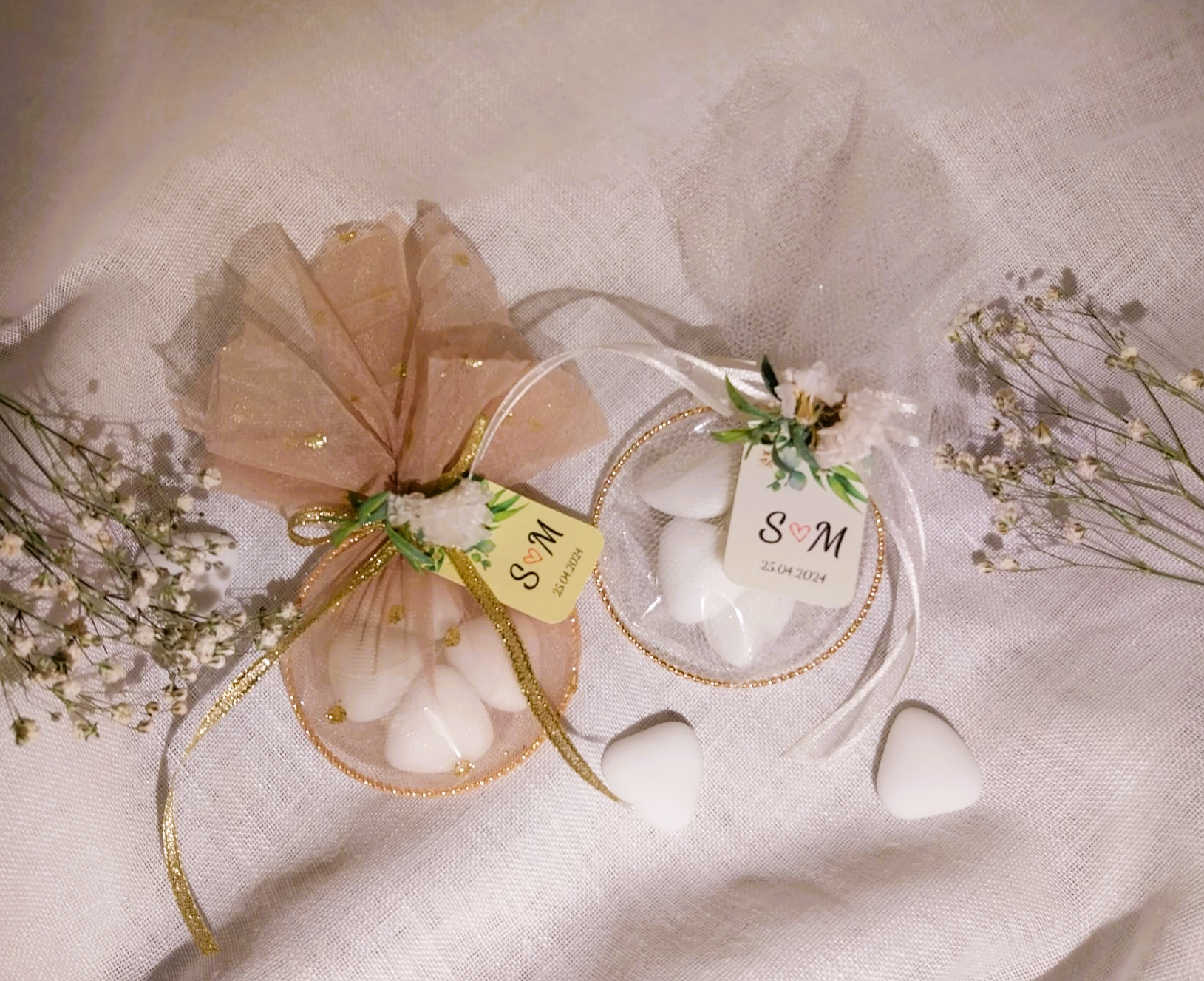 Portaconfetti in tulle, con bracciale in metallo.